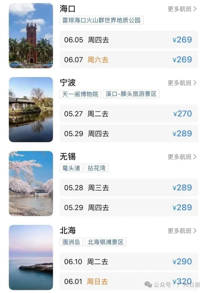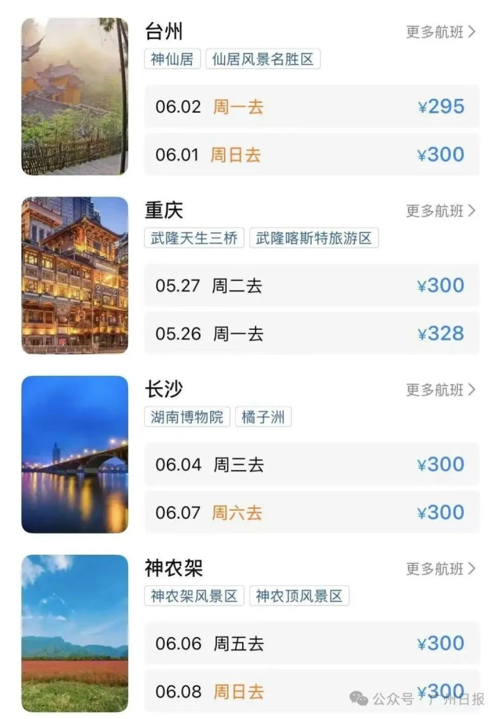 广州飞往多地有扣头机票