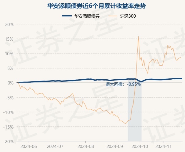 本站音讯,11月21日,华安添顺债券最新单元净值为1.0638元,累计净值为1.0638元,较前一往翌日上升0.04%。历史数据领悟该基金近1个月上升0.25%,近3个月上升0.46%,近6个月上升1.4%,近1年上升4.01%。该基金近6个月的累计收益率走势如下图:
