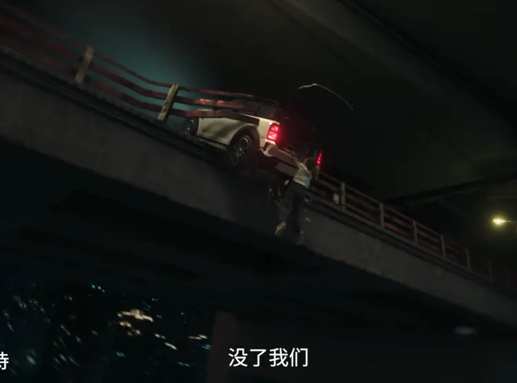 汽车在撞向桥边围栏,贾小朵收拢后备箱,以免掉进水中。