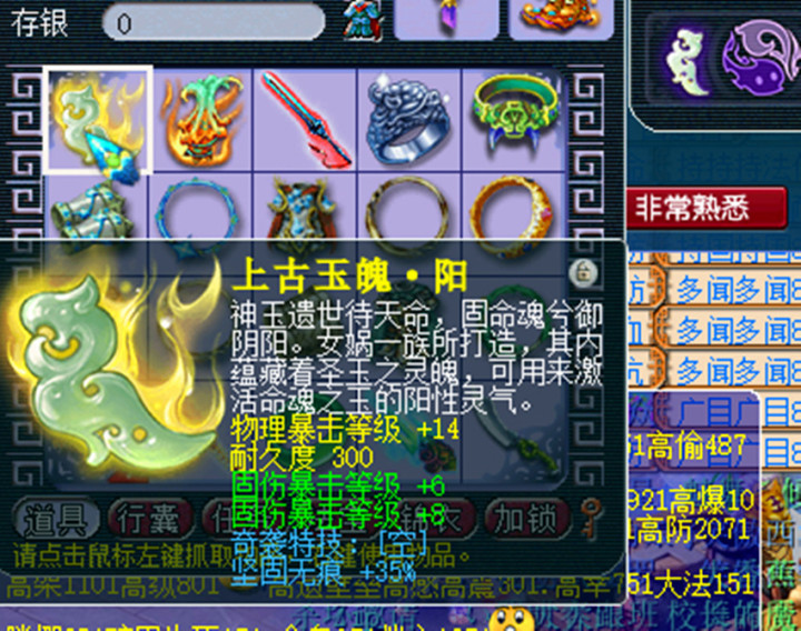 上头这位玩家在藏宝阁上刚刚购买的变装真实带着一个双固伤暴击品级的上古玉魄,上头的这个上古玉魄目下的价钱仍是相比贵的,不错给那些固伤门派的玩家使用。不外上头这位玩家策画该变装价钱的本领根柢就莫得策画该上古玉魄的价钱,因为上古玉魄在藏宝阁上根柢就不披露,也等于上头这位玩家当今找到的是不测惊喜。