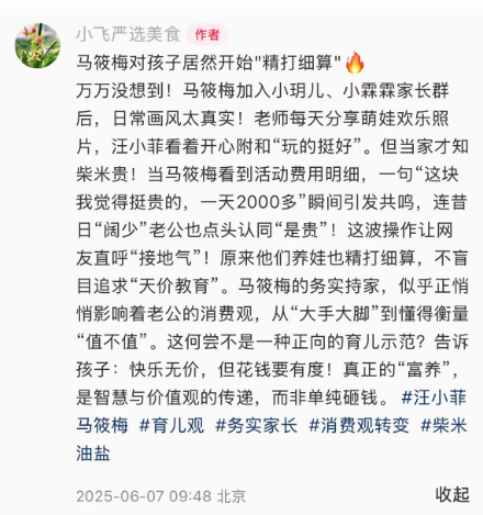 但在批驳区还出现了不一样的声息,有些网友以为马筱梅这个继母对小玥儿不免有些抠搜了,我方刷着汪小菲的卡购物,给小玥儿报夏日营却嫌贵,这岂不是有些双标了。