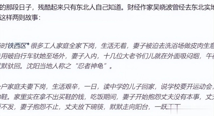 那些下岗员工都是莫得任何门第配景的芜俚东说念主,他们失去了使命之后就靠着这笔安置费辞世。