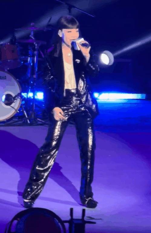 献唱两首新改编的歌曲,舞台上活力四射,张扬、灿烂的笑貌和嘹亮的歌喉感染力透彻。