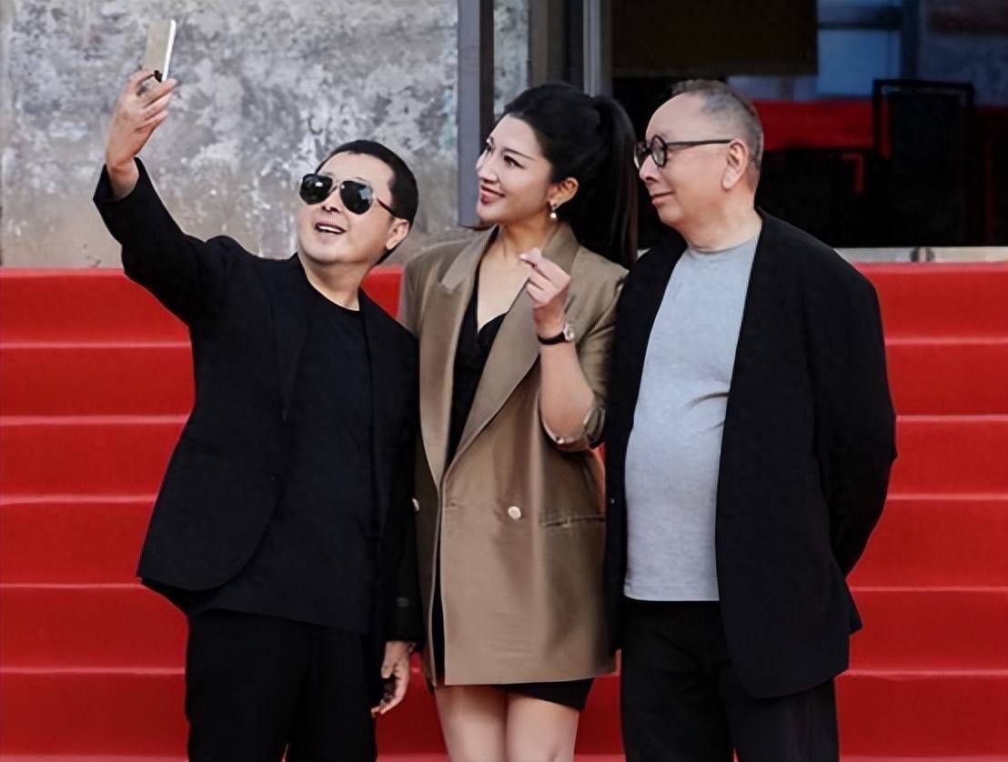 依旧是全黑套装搭配大墨镜,举入部属手机在红毯上与其他电影东说念主合照,活力四射的样貌完全看不出还是年过半百了,精神头太实足了。