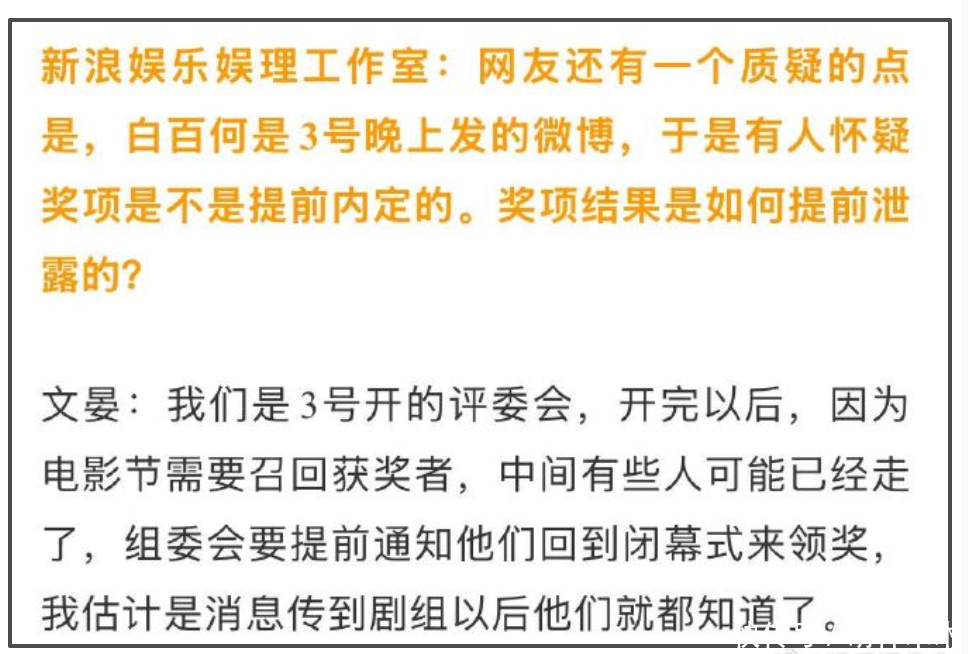 对于奖项内定的别传,文晏以为是奖项细则后,剧组调回时大众就差未几知说念了。否定了提前内定之说。