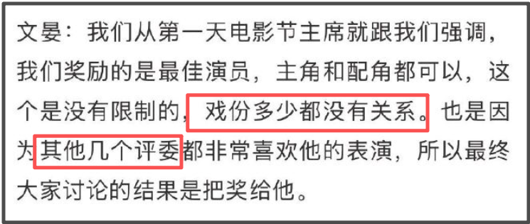 临了,对于王传君在《春树》中戏份少,却能拿了影帝,文晏悄悄挽尊,透露戏份若干没相相关,其他几位评委王人相配心爱他的扮演,是以最终后果把奖给了他。