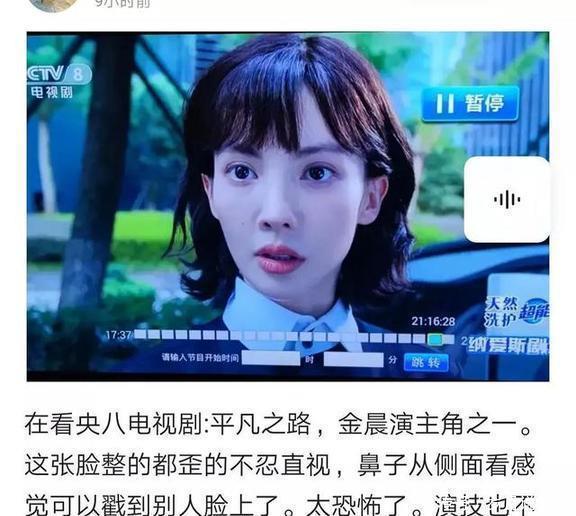不说她名谁知谈这是金晨,确乎漂亮,不外她的特写镜头,一张瘦瘦的脸上笑得那么僵硬,有点像个假东谈主。