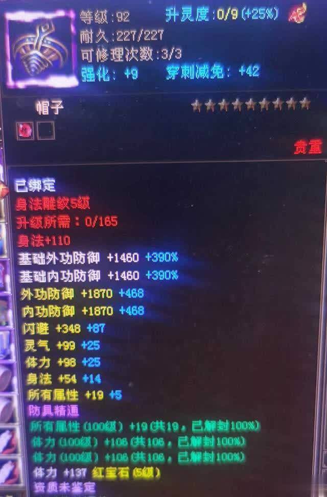 列位老铁,92级九星帽子属性又又又冲突下限啦: